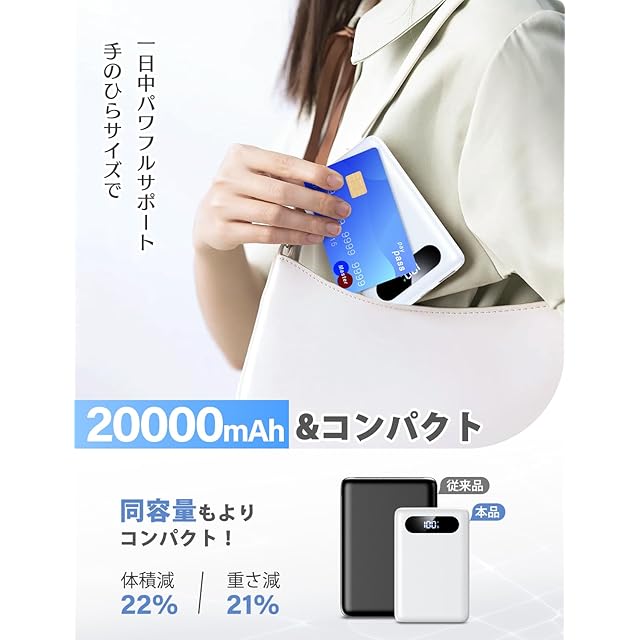 【2025新登場モバイルバッテリー!優れた実用性】大容量バッテリーと同時に軽量で持ち歩き易い希望な方と考え、弊社は新開発された「N4」いよいよ登場しています。20000mAh大容量はもちろん、重量僅か225グラムで、薄いの上に小型、手ひらぐらいのサイズで、ポケットに入れても感じしかねます。また、本製品は充電サイクル1000回以上の長寿命と高い安全性を実現するリチウムイオン電池を採用し、コンセントなしにしても充電できるのことで、様々なシーンで活用が可能です。その上に、急速充電も含め、トータル三つの充電ポートがありで、旅行か出張は友達か同僚にシェアてき、さらに台風、地震など緊急災害時にも欠かせない強力なパートナーであり、とても優れな商品です。