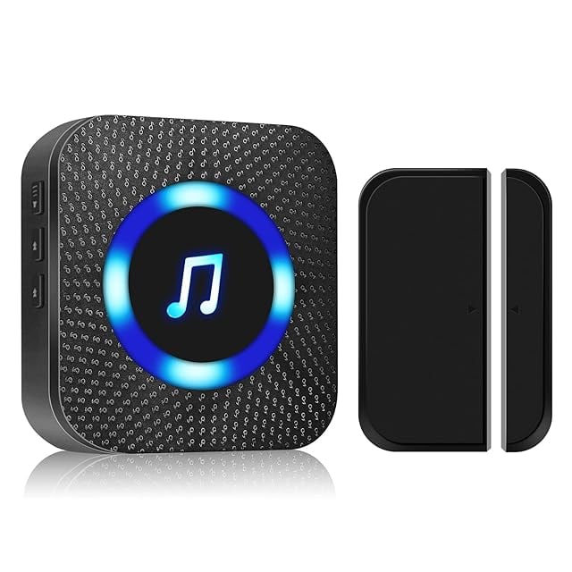 55曲、5段階音量調整、ミュートに設定できます、通信距離150メートル。受信機には5つのLEDライトがついており、ドアベルが鳴ると点灯します。