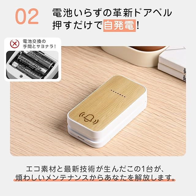 【電池不要&簡単取付】自動発電の送信機なので電池不要で、ボタンが押されたときのみ電力を生成します。このため、メンテナンスや交換の頻度が低く、長い寿命を持つことができます。 また両面テープとネジが付属しており、配線不要で簡単に取り付けることができます。 受信機はコンセントに差し込むだけ、お子供や年寄りの方がご利用できます。