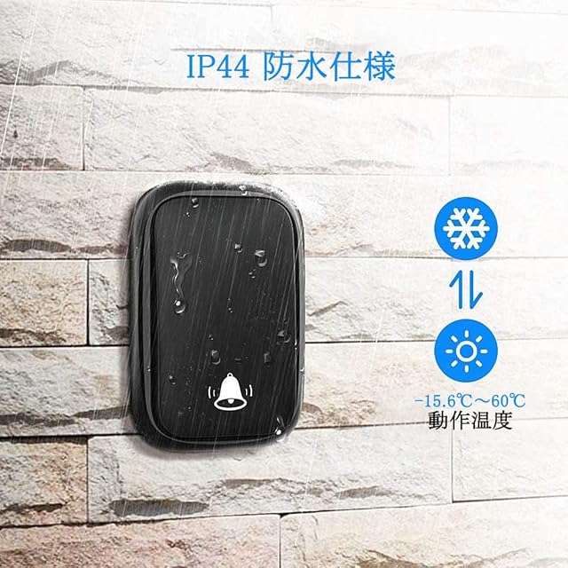 耐水防塵仕様で屋外でも安心:送信機は耐水防塵構造を採用。屋外や浴室など水がかかる環境でも使用可能。雨や水しぶきにも強く、内部回路や部品が損傷せず、常に安定した機能を発揮します。長期的に信頼性の高い通知デバイスとしてご利用いただけます。