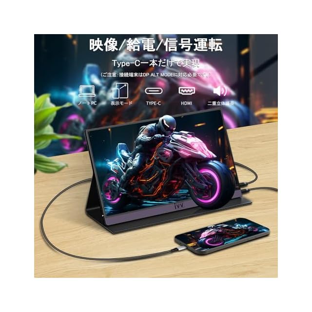 IVV 4Kモバイルモニター 13.3インチ IPSパネル 超軽量・薄型 HDR対応 3840x2160 解像度 16:9比率 sRGB100% USB-C/HDMI接続 ゲーミング・在宅勤務対応 スピーカー内蔵 保護カバー付き"