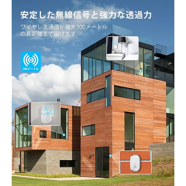 Derrysunワイヤレスチャイムは、高品質な音量調節機能を備えており、0dBから95dBの音量範囲をカバーしています。さらに、5段階の音量調節機能を備えており、環境に合わせて調節することができます。また、59曲から選べるメロディは、耳に残りやすく、人目を引くLED通知もついているので、来客を逃さず確実にお知らせします。 このチャイムは、長距離にも対応しており、最大300メートルの無線通信範囲を誇ります。しかも、安定した無線信号と強力な透過力を持っているので、通信エラーの心配もありません。防水防塵設計で、優れた耐久性を持ち、長い使用寿命を誇ります。 Derrysunワイヤレスチャイムは、老人や耳が不自由な方にも大変便利です。人が来ると音とLEDでお知らせするため、聴覚障害のある方でも、来客を逃さずに確実にお知らせすることができます。また、防水設計で、雨の日でも安心して使用することができます。 このチャイムは、59曲から選べるメロディが魅力的なだけでなく、耐久性や無線通信の強さも特徴的です。高品質な音質と安定した通信範囲を持つDerrysun ワイヤレスチャイムは、あなたの家庭やオフィスで、確実に来客をお知らせすることができます。