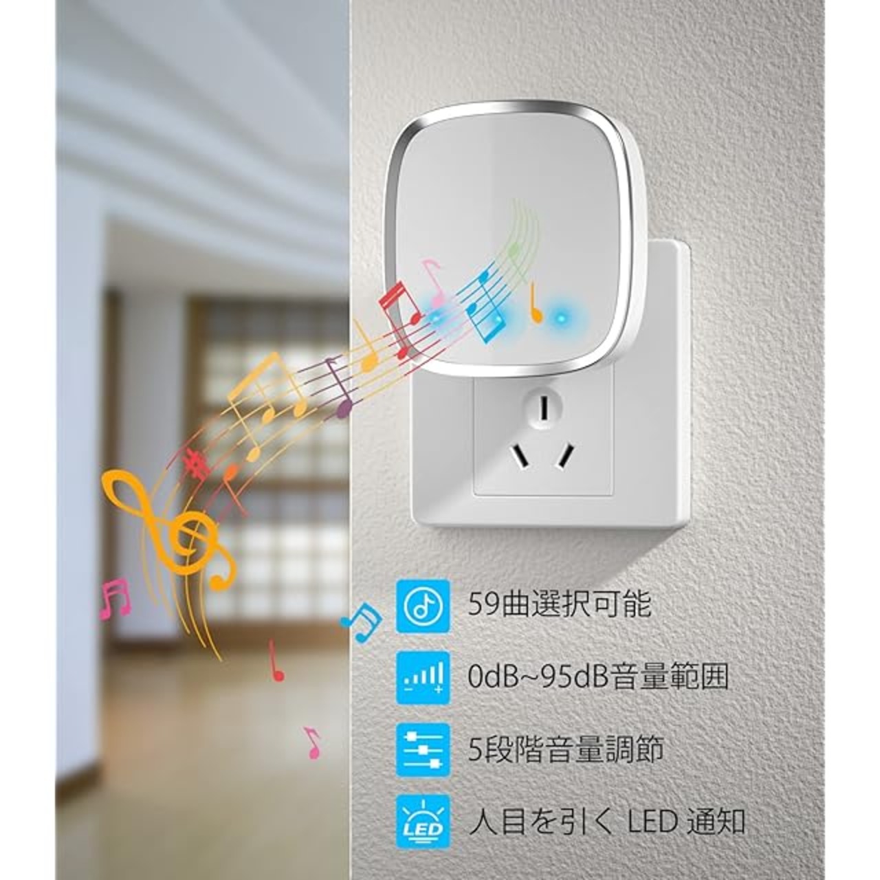 59曲から選べるメロディは、耳に残りやすく、人目を引くLED通知もついているので、来客を逃さず確実にお知らせします。