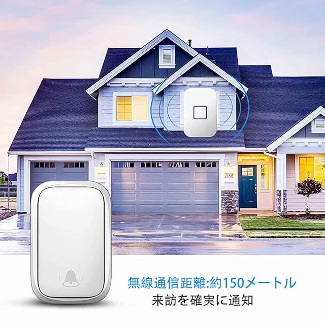 60 種類の音色と 5 段階音量調整、光表示付き:この自発電ワイヤレスドアチャイムの送信機を押すと、受信機が音を鳴らしながら両方のライトが点滅して通知します。60 種の楽曲から選べ、音量も 0 - 85DB の 5 段階で調整可能。使用シーンや好みに合わせて最適な音量を設定でき、極めて便利です。