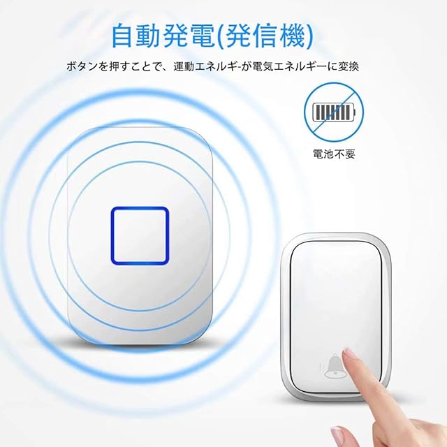 電池不要&簡単取り付け設計:自動発電式の送信機で電池不要。ボタンを押すだけで電力が生成され、メンテナンスや交換の手間が省け、長寿命です。付属の両面テープとネジで配線不要で取り付け可能。受信機はコンセントに差し込み式なので、子供や高齢者でも使いやすい。