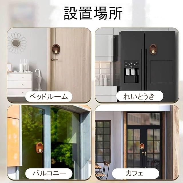 【設置場所】自宅の玄関ドア、キッチンドア、ヘアドア、冷蔵庫ドアはもちろん、喫茶店、雑貨店など店舗の出入り口ドアにも設置できます。ドアが動く時にベルが鳴り、音を気づかせてくれるため、防犯効果があります。<br> 【特別なギフト】誕生日や引っ越しのお祝い、結婚式、クリスマス、母の日、父の日、記念日など、さまざまな特別な場面で最適なギフトとなります。親しい友人や家族に温かさと驚きを提供します。