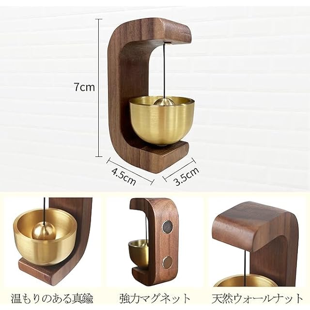【製品規格】:製品サイズは約7.5*3.5*2.5 cm、製品重量は約60 g、胡桃C型。<br><br><br><br>【取り付けが便利】:ドアベルには2種類の取り付け方法があり、ドアベルには強力な磁石が内蔵されており、各種の金属表面に吸着でき、穴をあける必要がなく、痕跡を残さない。両面テープも付いているので、両面テープを使用してドアチャイムを木のドアやガラスのドアに固定することができます。<br><br><br><br>【素敵な音】:フラットドアとプッシュドアに対応し、ドアを開けるたびに素敵な音がして、あなたの家に素敵な雰囲気をもたらします。注意:ドアの開閉方法や力の大きさによっては、ドアのベルが正しく応答しないことがあります。<br><br><br><br>【幅広く適用】:あなたの家の前ドア、キッチンドア、冷蔵庫ドアだけでなく、カフェ、雑貨店などの店の出入り口ドアにも取り付けることができます。ドアが動くとベルが鳴り、音に注意してください。<br><br><br><br>【ご注意】:製品を受け取って何か問題があれば、すぐに連絡してください。私たちはあなたのために問題を解決します。