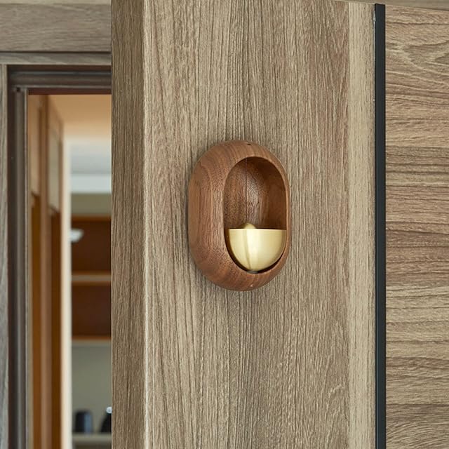 ドアベル 玄関 玄関チャイム 木製 非電動 真鍮 ドア鈴 玄関 鈴 ドアチャイム 玄関ベル 壁掛け 両面テープ付き 取付簡単 ホーム用 店舗用 引き戸 装飾 転居 誕生日 お祝い プレゼント (ウォールナット)
