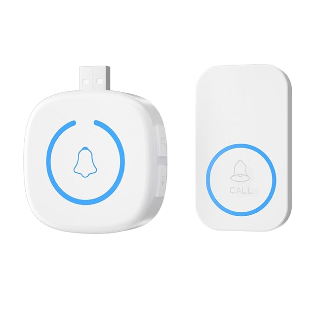 玄関チャイム ドアベルキット ワイヤレスチャイム ドアベル HAB 工事不要 USB式電源 60メロディー 5段階音量 ワイヤレス通信が最大300メートル 呼び鈴 玄関 自宅 ナースコール 事務所 工場 介護現場 店舗 レストラン 居酒屋 受信機、送信機 (ホワイト)