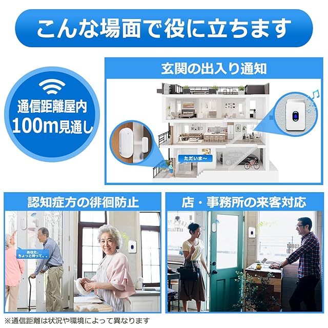 【多用途なドアベルチャイム】高齢の親が知らない間に家から出るのを感知できるだけでなく、お客様の来店に気付かない時がありましたが、これ一つで店の奥にいてもすぐにいらっしゃいませーと出迎えられるようになります