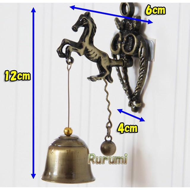 Rurumi アンティーク 調 ドアベル マグネット 磁石 タイプ ドア チャイム 呼び鈴 アイアン ベル 風水 グッズ 縁起物 (馬)