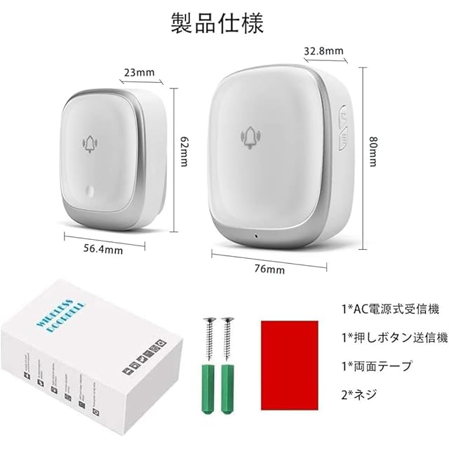 【ラクラクな取付】電池不要の無線チャイムで配線工事も不要です。電池交換の不便もなくて、ドアチャイム受信機はコンセントに差し込むだけで、送信機をドアフレームに固定し(両面テープでの接着可能)ボタンを押すだけでチャイムが流れます。設置が簡単で手軽です。お子供や年寄りの方もご利用できます。