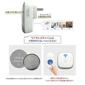 『受信機仕様:受信機は配線不要のデザインです』コンセントがある場所なら、どこにでも受信機を設置可能。ニーズに満足できるチャイムです。磁石センサー仕様:送信機は電池式ので、付属の両面テープで簡単に取り付けが可能です。開閉センサー使用電池はCR2032 3Vリチュウムイオン電池(内藏)です。