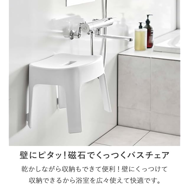 [仕様]完成品、生産国:中国、取り付け可能な壁面:マグネットがつく平らな面・スチール壁面、【風呂イス】耐荷重:約100kg、耐熱温度:約70℃、耐冷温度:約-40℃ / 【手おけ】容量:約1.5L、耐熱温度:160℃、耐冷温度:-40℃