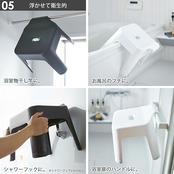 [仕様]完成品、生産国:中国、【風呂イス】耐荷重:約100kg、耐熱温度:150℃、耐冷温度:-40℃、収納可能なパイプ:直径 約3cm以下 / 【湯おけ】容量:約2.5L、耐熱温度:約170℃、耐冷温度:約-40℃、取り付け可能な壁面:マグネットが付く平らな面・スチール壁面、取り付け可能なパイプ:直径約3cm以下
