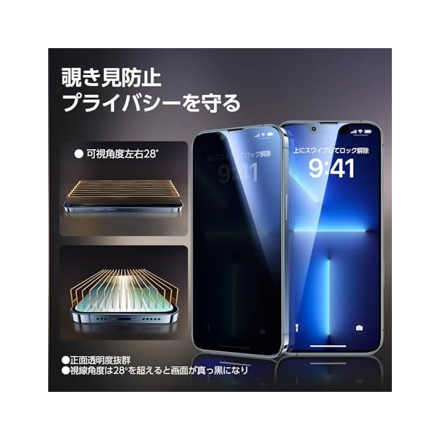 【覗き見防止・プライバシーを常に守る】ブラインド技術を搭載され、視野角度が左右約28°となり、28°を超えると画面が真っ黒になります。電車、エレベーター、地下鉄の中でメッセージを確認する場合に、周りからの覗き見を心配せずにLINEやメールの交換も安心できます。