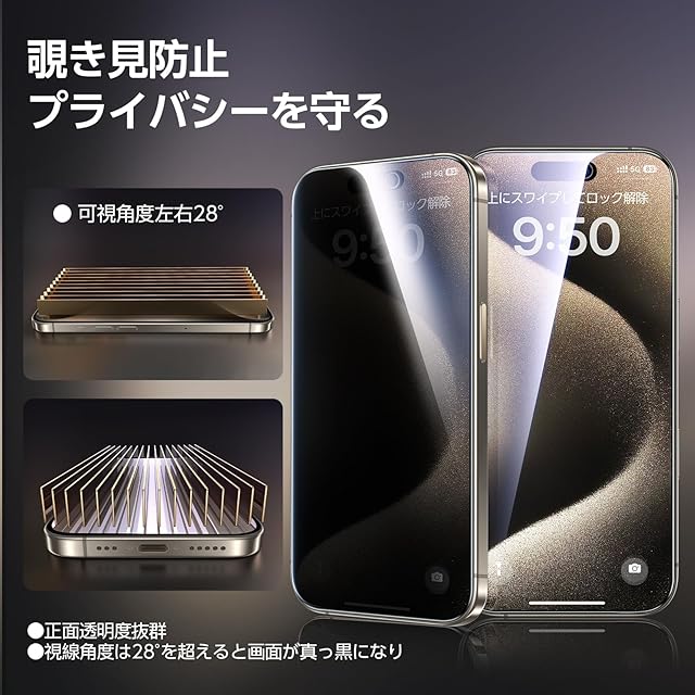 【覗き見防止・プライバシーを常に守る】ブラインド技術を搭載され、視野角度が左右約28°となり、28°を超えると画面が真っ黒になります。電車、エレベーター、地下鉄の中でメッセージを確認する場合に、周りからの覗き見を心配せずにLINEやメールの交換も安心できます。