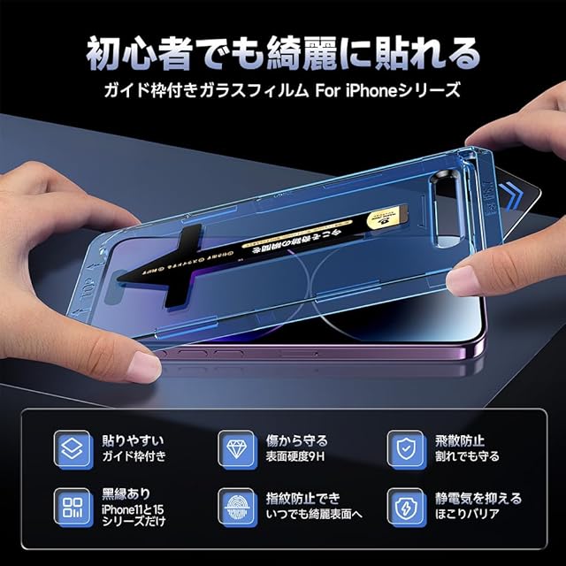 【もう失敗はしない】本製品はiPhone14/13/13Proに対応するプライバシーフィルム2枚セットです。百万以上の欧米ユーザーのフィドバックを集めて日々改善したガイド枠は、3歩だけで保護フィルムを貼り付けます。そのうえ、自動ホコリ取りデザインだけでなく、ガイド枠のスロープデザインで、空気を順序に取り除くことができて、初心者でも気泡レスのまま綺麗に貼れます。