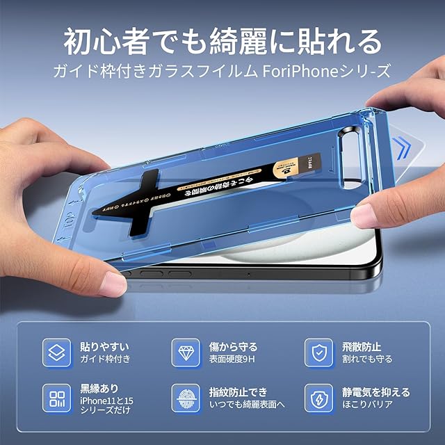 【もう失敗はしない】本製品はiPhone 15 Proに対応するプライバシーフィルム2枚セットです。百万以上の欧米ユーザーのフィドバックを集めて日々改善したガイド枠は、3歩だけで保護フィルムを貼り付けます。そのうえ、自動ホコリ取りデザインだけでなく、ガイド枠のスロープデザインで、空気を順序に取り除くことができて、初心者でも気泡レスのまま綺麗に貼れます。