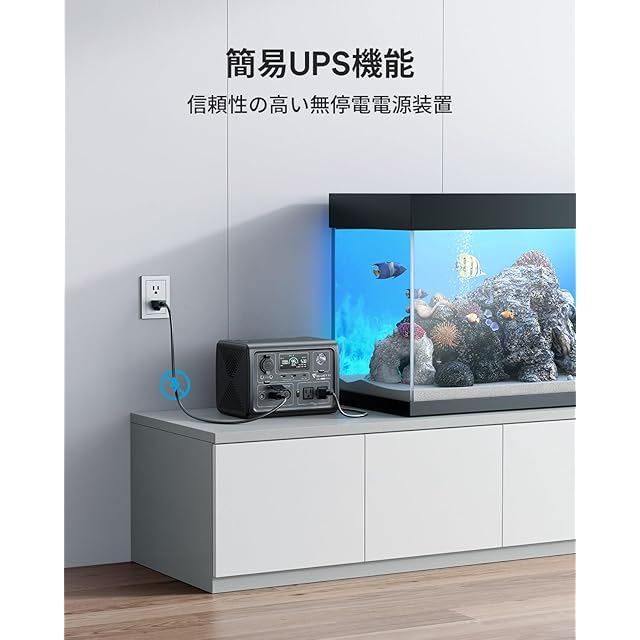 【簡易UPS付き】専門的なUPS(無停電電源装置)は、重くて高価です。EB3Aは超小型のポータブル電源ですが、簡易UPS機能が付いています。電力が遮断されたり、安全レベルを超える変動があったりした場合、EB3Aは瞬時にバックアップ電源を供給します。停電が発生しても、EB3Aは充電される同時に電力の供給を続きます。