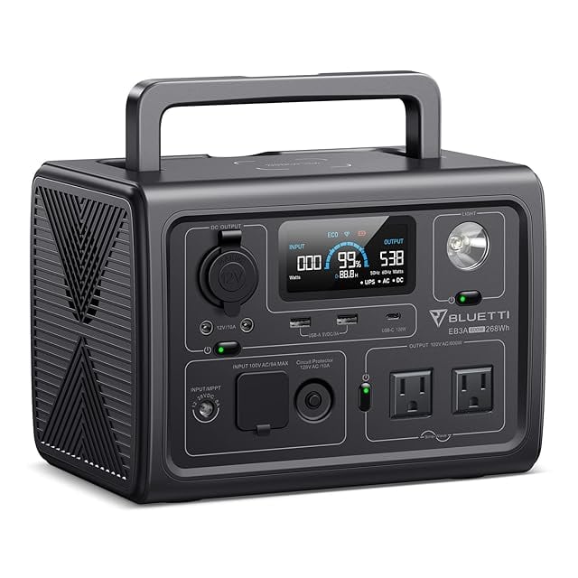 BLUETTI ポータブル電源 EB3A 268Wh/600W APP遠隔操作 EPS機能付き 電力リフト機能付 エコモード機能搭載 リン酸鉄リチウム 純正弦波 MPPT制御方式採用 家庭アウトドア両用バックアップバッテリー キャンプ/車中泊/防災グッズ LEDライト付き ソーラー充電 AC100V 50Hz/60Hz対応