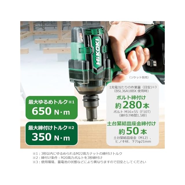 HiKOKI(ハイコーキ) 36V 充電式 インパクトレンチ WR36DH ブラック 最大締付けトルク350N・m 蓄電池2個・充電器付 WR36DH(2XPBSZ)
