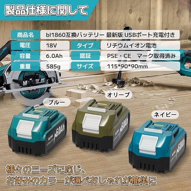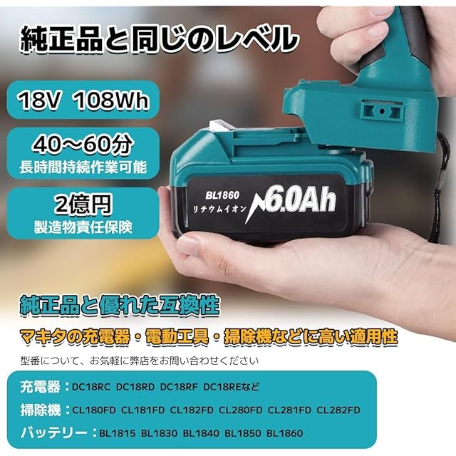 【幅広い互換性】 BL1815B、BL1820B、BL1830Bなどのマキタ18V電動工具に対応。セットで購入することで、家中の工具に対応可能なバッテリーが手に入り、工具の稼働率が上がります。