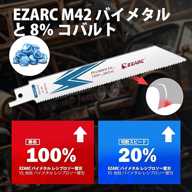 刃先材質はバイメタル + コバルトハイス鋼,切断寿命大幅アップ!