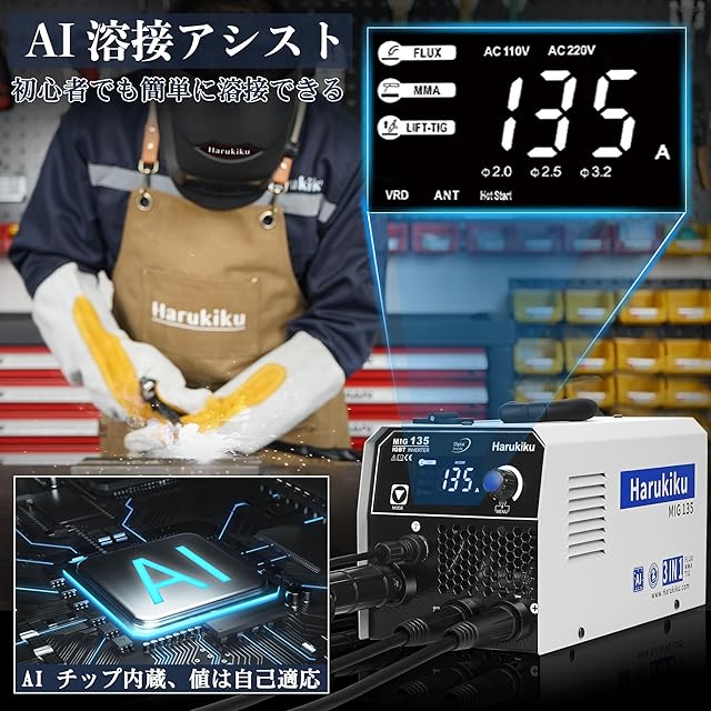 【簡単操作】Harukiku 多機能溶接機は家庭用AC100Vおよび200Vの両方に対応し、電源に応じて自動的に切り替わります。MMA(手棒溶接)には、アークスタート時に出力電流を瞬時に増加させ、低電流溶接時のアークスタート成功率を50%向上させる「ホットアークスタート機能」。 安定した溶接アークを維持するために、溶接プロセス中に溶接電流の大きさを自動的に調整する「アーク推力機能」。溶接棒が母材と接着するのを防ぐ「溶接棒付着防止機能」!日本語の説明書が付属しており、複雑な設定は必要なく、誰でもすぐに使用を開始することができます。