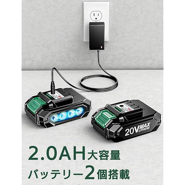 【コードレスポリッシャー&2000mAhバッテリー2個】コードレスポリッシャーには、2000mAhの大容量リチウム電池が2つ装備されており、長期稼働のための中断のない電力供給を確保し、電源コードの束縛を取り除き、自由に移動してさまざまな作業を完了できます。タスクを簡単に磨き上げることができます。バッテリーの確認ボタンを押したら、残量が色別LEDで4段階に表示され、電力状況が分かりやすいです。