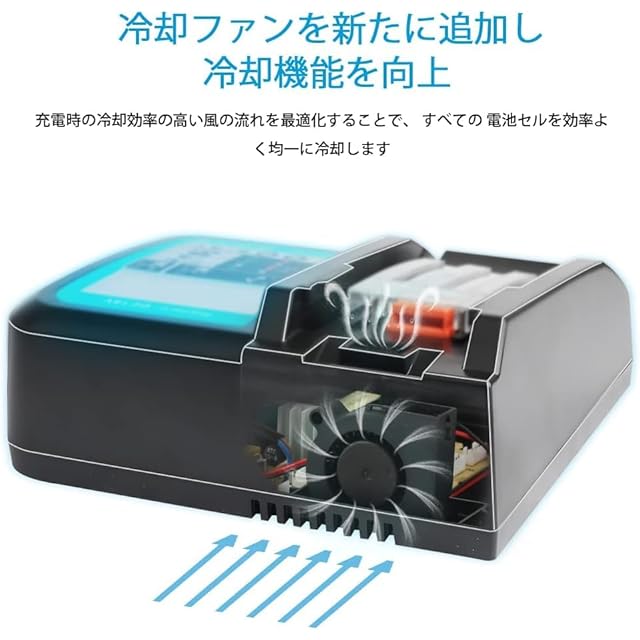 ★★Waitley マキタ充電器は液晶パネル搭載 充電状況の確認が便利です。マキタ18V純正、互換バッテリーは充電可能、バッテリー充電始まりと終わりにも提示メロディ付いています。 冷却ファン付き、充電中バッテリーの温度があまりに高くなると自動に冷却できて。安全充電を実現させます。