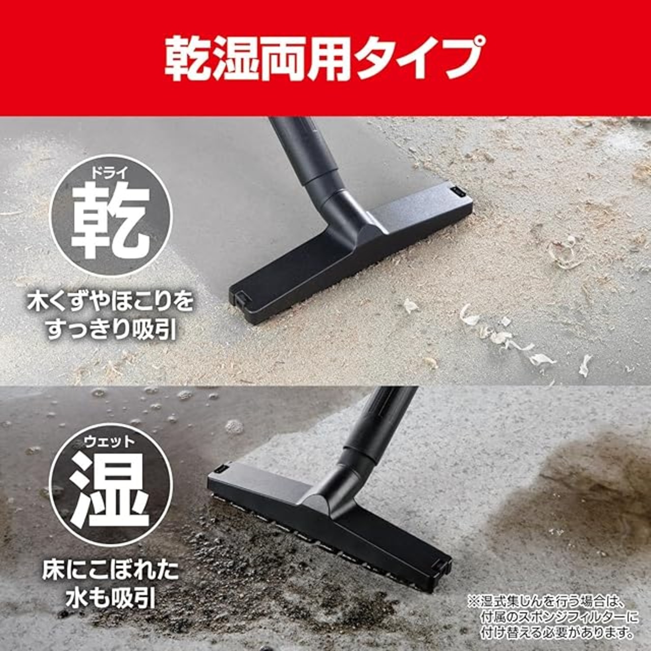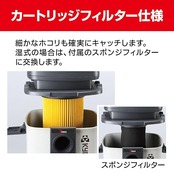 付属品:ホース(32mm×1.8m)×1・延長管×2・床ブラシ(乾湿両用)×1・スキマノズル×1・カートリッジフィルター(乾式用)×1・スポンジフィルター(湿式用)×1・ホース接続ハンドル×1・フィルターロック×1・キャスター×4