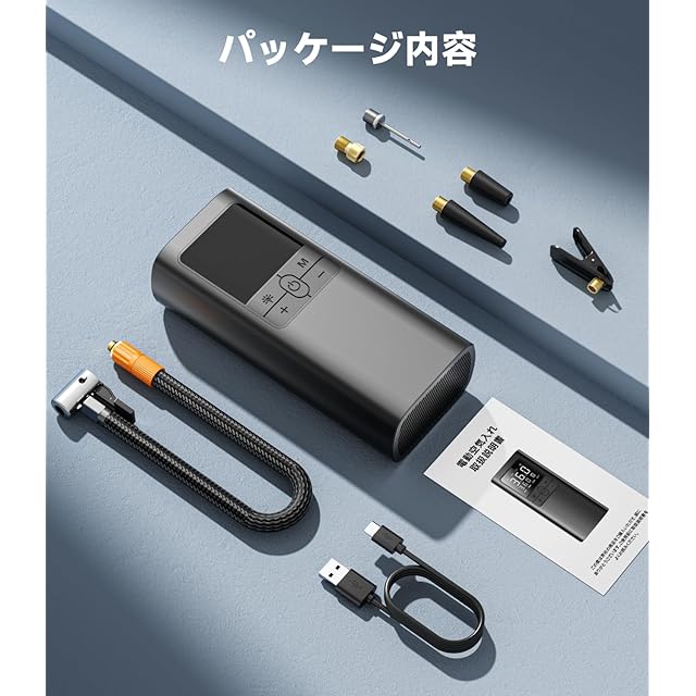 ご注意:空気入れは温度が低すぎる場所に保管しないでください。また、充電中は使用しないでください。タイヤに空気が入っていない場合は、タイヤに漏れがないか確認してください。以下を含む:空気入れ本体、米式延長ホース、ボート用ノズル、浮き輪用ノズル、英式变換バルブ、仏式変換バルブ、Type-C充電ケーブル、ボール用ニードルバルプ。 また、ご質問があればいつでも私達に連絡することができます!(「アマゾンホームページ」 >「 注文履歴 」>「 出品者」に連絡するという手順でお願いいたします。)