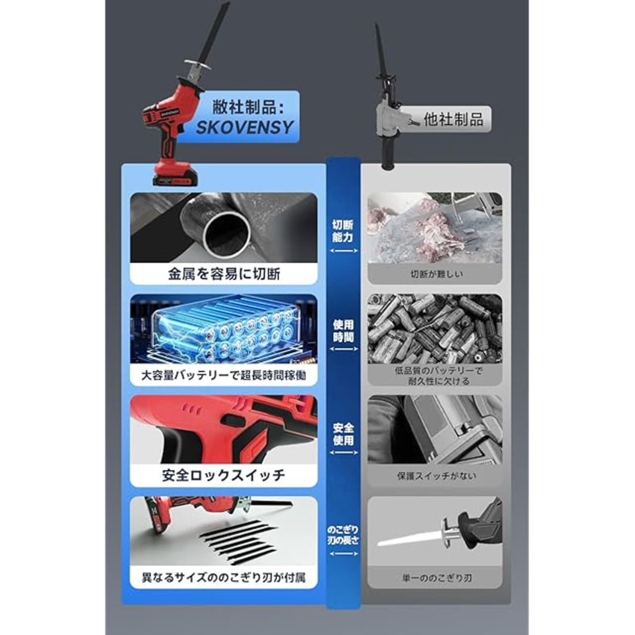 【実用性に優れたコードレスレシプロソー】 バッテリー2個付きで、長時間の作業にも対応。コードレスなので場所を選ばず、どんな現場でもレシプロソーが活躍します。現場作業・DIY・緊急修理など、幅広い用途に最適です。