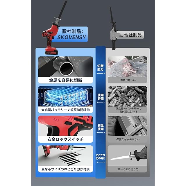 【プロ仕様の切断力を持つレシプロソー】 このレシプロソーは、業務用レベルのパワーを備えながらも、家庭用に最適なサイズ感を実現。高トルクモーターによって、厚みのある木材や金属パイプもスムーズに切断可能です。