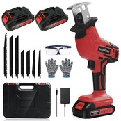 レシプロソー 電動ノコギリ 電動工具 ノコギリ 無段変速 一台多役 家庭用 小型 軽量 電動カッター 充電式レシプロソー 2個バッテリ WFJ レッド