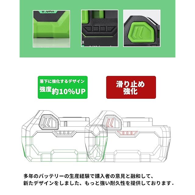 【高耐久性】新たな凹凸デザインを使用し、衝撃や落下など状況に安全性が上がります。工具と繋がる所に滑り防止柄のデザインがあり、取り外しの時に滑りで落下の可能性を減少します。