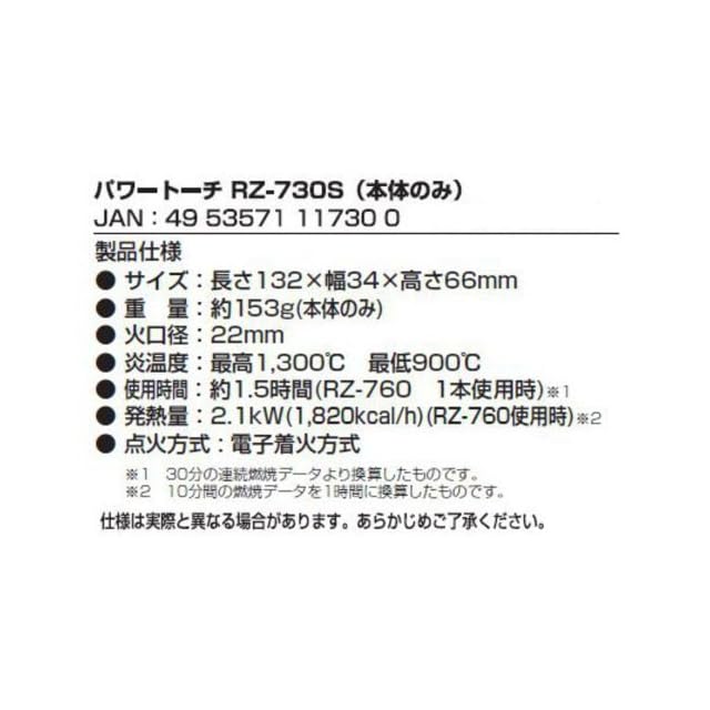 ●燃焼時間:約1時間30分(RZ-760使用時)