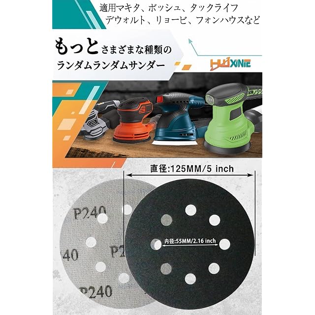【ユニバーサル仕様】直径125mm(5インチ)のサンディングパッドは、さまざまなタイプのランダムサンダーに適しています;DIYに最適なセットです