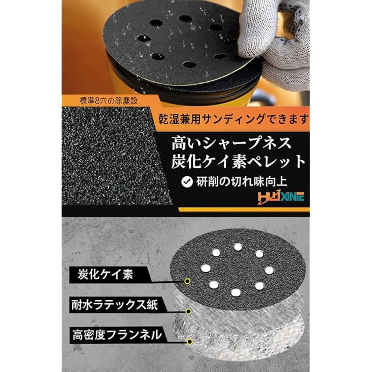 【マジックテープ式】:マジック式研磨紙で簡単に交換ができます、密着性に優れ 高速で耐久性のあるサンディングを提供することで、集塵用に8つの穴を事前に打ち抜きます 穴の位置も正確でした目詰まりしにくいです