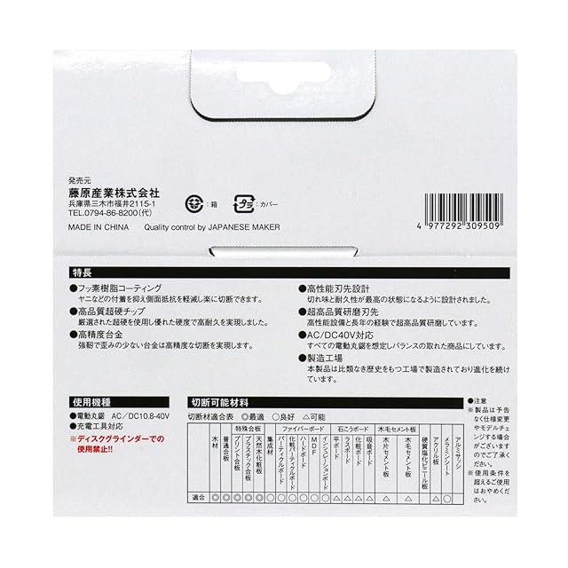 特徴1:フッ素コートで挽きが軽い、腰入台金により直進性に優れたチップソー