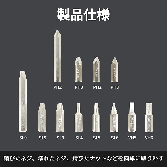 【多様な用途】このショックドライバーセットは固定したネジ、錆びたネジ、なめたネジなど取り外しにくいネジを手軽に取り外せます。バイク、車、家用家電などの修理に最適です。