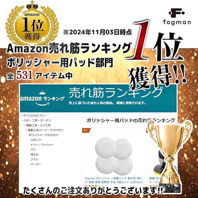 fogman ポリッシャー 研磨パッド 耐久性 滑らか 洗車 家具 柔軟性 羊毛 4個セット (100mm)