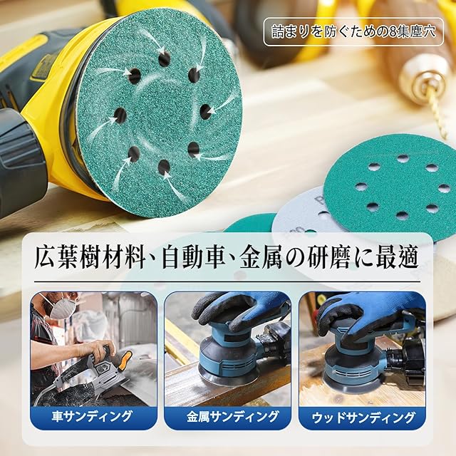 【使いやすいマジックテープ式】ベースは柔軟性の高いポリエステル繊維でできており、サンディング時のひび割れを防ぐ、高密度ナイロンの裏地と相まって、より強力な吸着特性を備えています;集塵用に8つの穴を事前に打ち抜きます 穴の位置も正確でした目詰まりの心配はありません