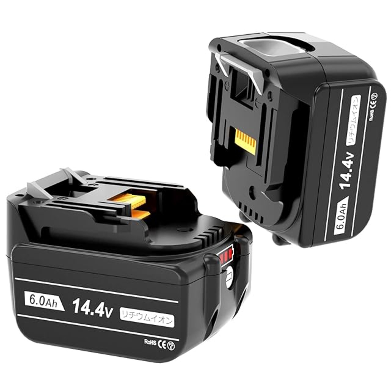 【商品仕様】マキタ 14.4v バッテリー型番:BL1460B 電圧:14.4v 容量:6000mAh 大容量 個数:2個セット LED残量表示+自己故障診断 PSE/CEマークを取得済み リチウムイオン電池 交換バッテリーで、寿命特性、充電時間、連続使用時間も純正品と同じレベルのマキタ 14.4V互換バッテリーです。