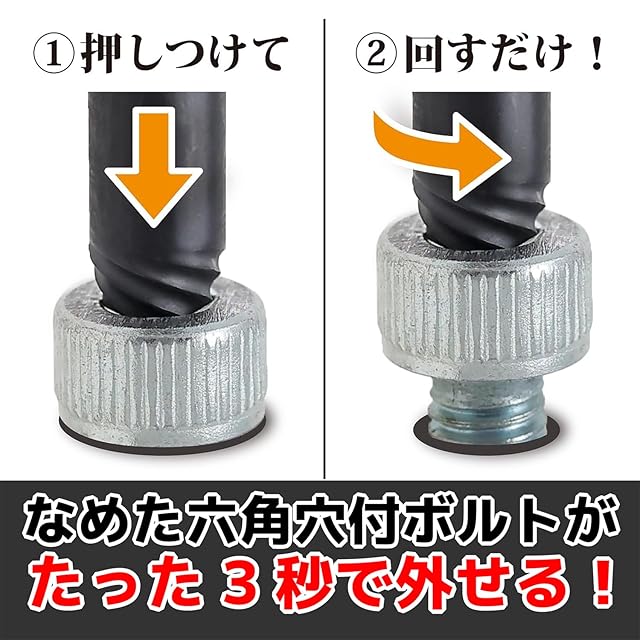 独自の先端形状により、潰れた六角穴付ボルトを叩かず外せます。