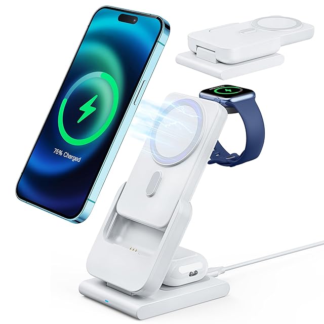 【幅広い互換性】コンパチブルiPhone 15/14/ Pro/Plus/Pro Max/iPhone 13/13 Mini/13 Pro/13 Pro max/12/12 Mini/12 Pro/12 Pro Max, コンパチブル アップルウォッチ Ultra2/9/Ultra/8/7/SE/6/5、コンパチブルAirPods 3/2 Proと互換性があります。iPhone8以降iPhone11までの機種であれば、磁気増加リングあるいはマグネット式iPhoneカバーを着ければ、上部のmag-safe充電器で充電できます。台座のワイヤレス充電器はAirPodsだけでなく、qi充電対応のAndroid/iPhone12-14シリーズ、iPhone 8/8 Plus/iPhone X/XS/XS Max/ XR,iPhone 11/11 Pro/11 Pro Max,iPhone SE(第2世代)とも互換性があります。