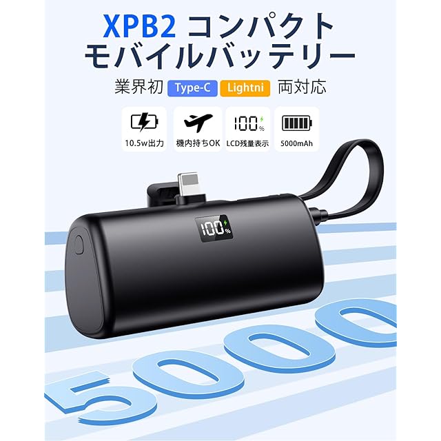 【高い互換性・幅広い対応機器】内蔵されたライトニングコネクタで、iPhone、iPad、AirPodsなど、すべてのApple製品と簡単に接続できます。蓋を開けた瞬間に充電が始まり、バッテリー残量の心配から解放されます。すぐに充電できるので、低電力の不安をすばやく解消でき、どこでも安心して使えます。【誰でも簡単操作・年齢問わず使える】とてもシンプル!挿すだけですぐに充電開始。難しい操作は一切不要で、低バッテリーの警告が消えた瞬間、焦らずリラックスできます。急いでいる時でも、手間をかけずにすぐに使えて、どんなシーンでも助けてくれる頼もしいアイテムです。【17.28Wh・機内持ち込みOK】国内外問わず、飛行機の機内にも持ち込めるので、旅行や出張、研修などの長時間外出にも最適です。飛行機内での充電が可能なこのモバイルバッテリーで、どこでも安心して使用できます。