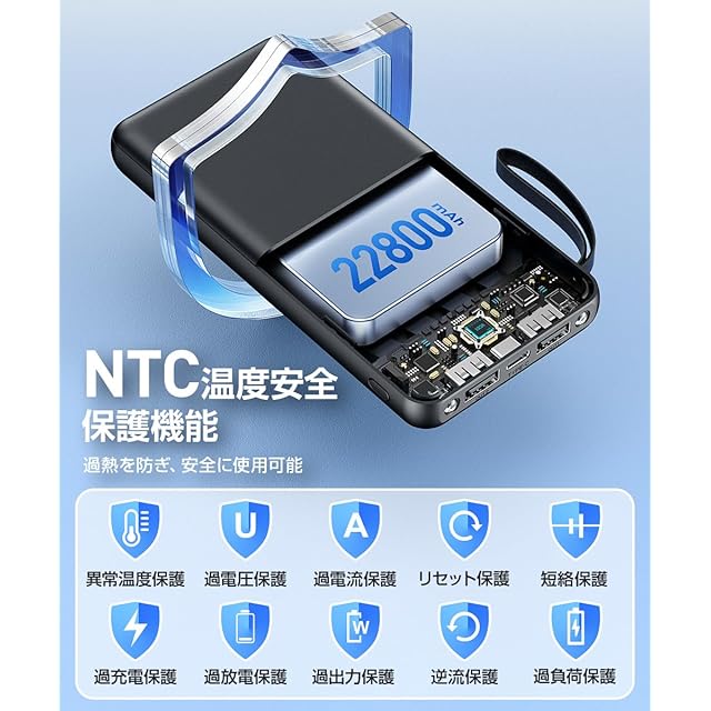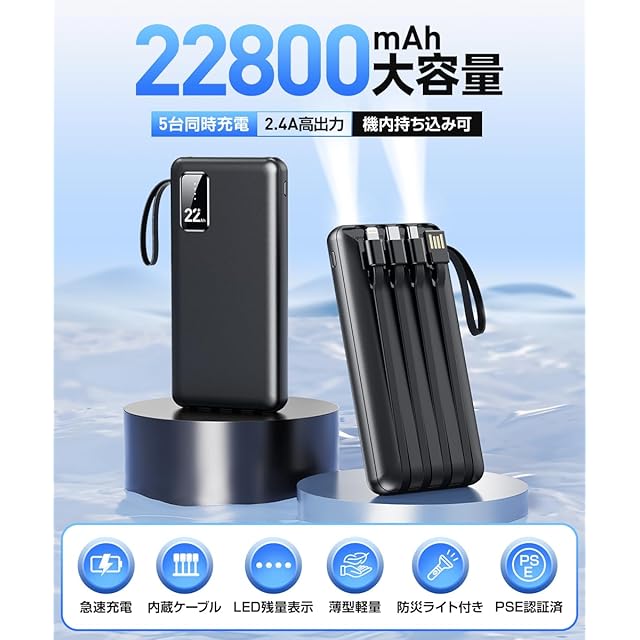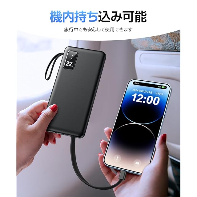 機内持ち込み可能な大容量モバイルバッテリー。軽量で小型、PSE認証済みの安全設計。急速充電にも対応しており、外出先での使用に最適です。