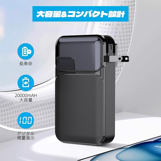 【2025年新モデル・大容量モバイルバッテリーが登場!】2025最新版 20000mAh 大容量 モバイルバッテリー はUSB-C、lightingの2規格の出力ケーブルが内蔵されています。またはUSB、type-Cの2規格のポートもあります。専用ケーブルを持ち歩く必要がなく、各種タイプのデバイスに対応できるため非常に便利です。家族や友人と旅行に行った際や出張時、複数のスマホやデバイスの充電が必要な時でもこの一台で十分です。これにより、忙しい日常や外出先でもバッテリー切れの心配をすることなく、効率的に充電することが可能です。